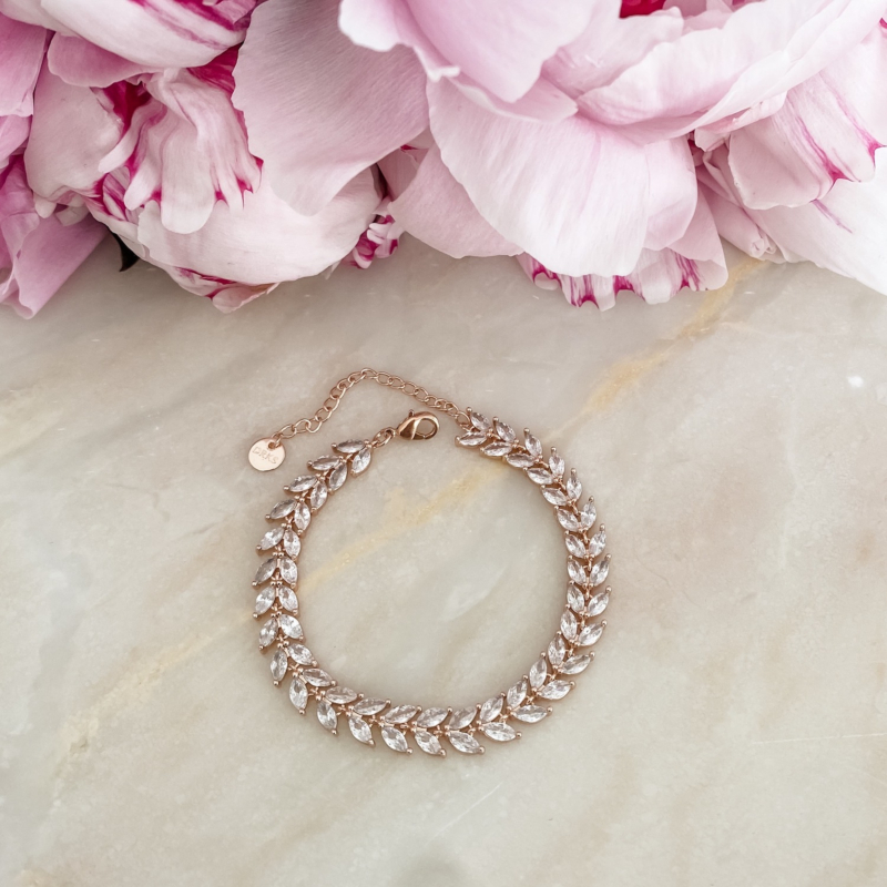 Komt jouw grote dag steeds dichterbij en ben je nog op zoek naar rose goud kleurige bruidssieraden om te dragen op jouw bruiloft? Dan is deze armband & oorbellen set voor jou gemaakt! De sieraden set is met heel veel zorg en liefde samengesteld, zodat de twee sieraden perfect bij elkaar passen. Met deze rose goud kleurige armband & oorbellen set ben je verzekerd van matchende sieraden op jouw bruiloft! Alle details van deze rose goud kleurige armband & oorbellen set voor de bruid staan hieronder op een rijtje:
