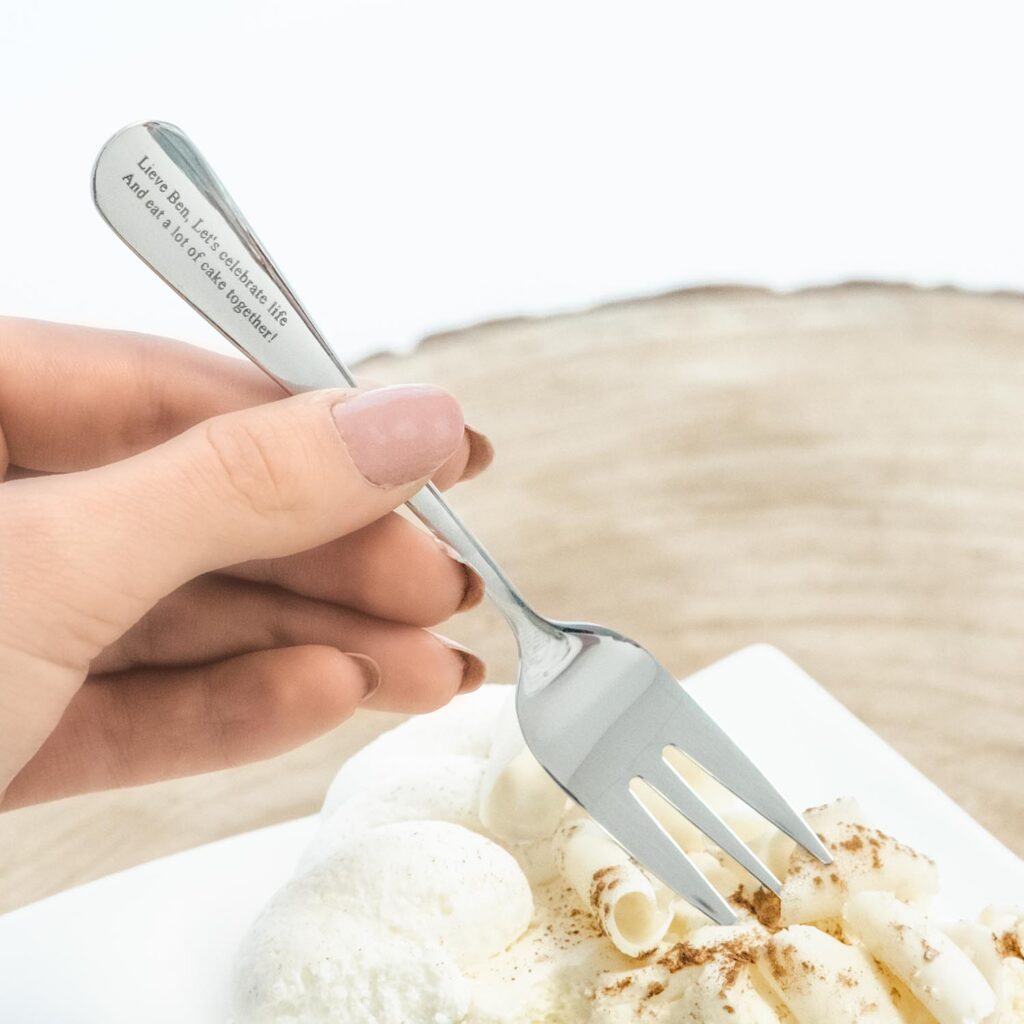 6. Graveerbare gebaksvorkjes of dessertlepels