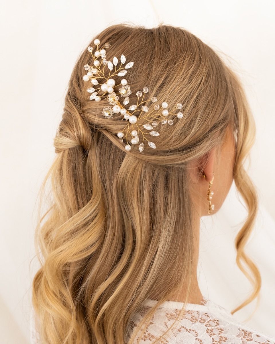 Of je nu een romantisch opgestoken kapsel hebt of los haar met zachte krullen, een subtiele haarkam, haarsieraad of haarpin van DRKS maakt je look compleet. En neem voor de zekerheid altijd een reserve-accessoire mee, just in case.