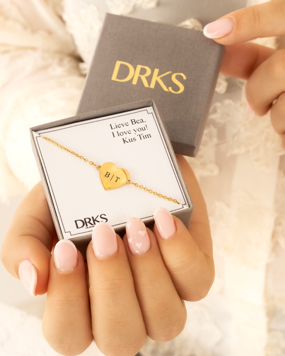 Sommige cadeaus zijn mooi; andere blijven voor altijd! De graveerbare sieraden van DRKS vallen in die laatste categorie. Laat jullie initialen, een datum of zelfs een korte liefdesboodschap graveren op een armband, ketting of sleutelhanger.