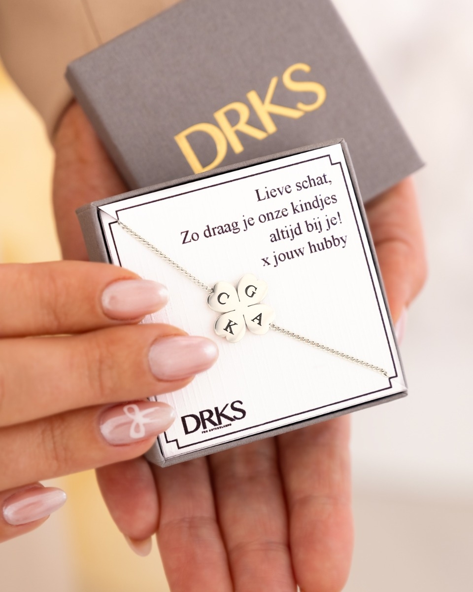Wij raden stainless steel of verguld stainless steel aan. Dit materiaal is sterk, nikkelvrij en blijft lang mooi. Perfect dus voor een gravure die je jarenlang wilt koesteren. Bovendien worden al onze sieraden gratis gegraveerd en geleverd in een luxe DRKS-doosje, helemaal klaar om cadeau te geven.