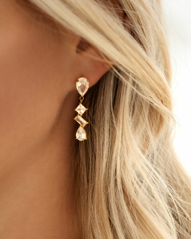 Ben jij op zoek naar sieraden voor een speciale gelegenheid zoals bijvoorbeeld een bruiloft? Met deze set ben je in één keer klaar! De set bestaat uit een ketting, armband en een paar oorbellen die perfect met elkaar matchen. Dit zijn alle details van de goudkleurige bruiloft sieradenset met steentjes:
