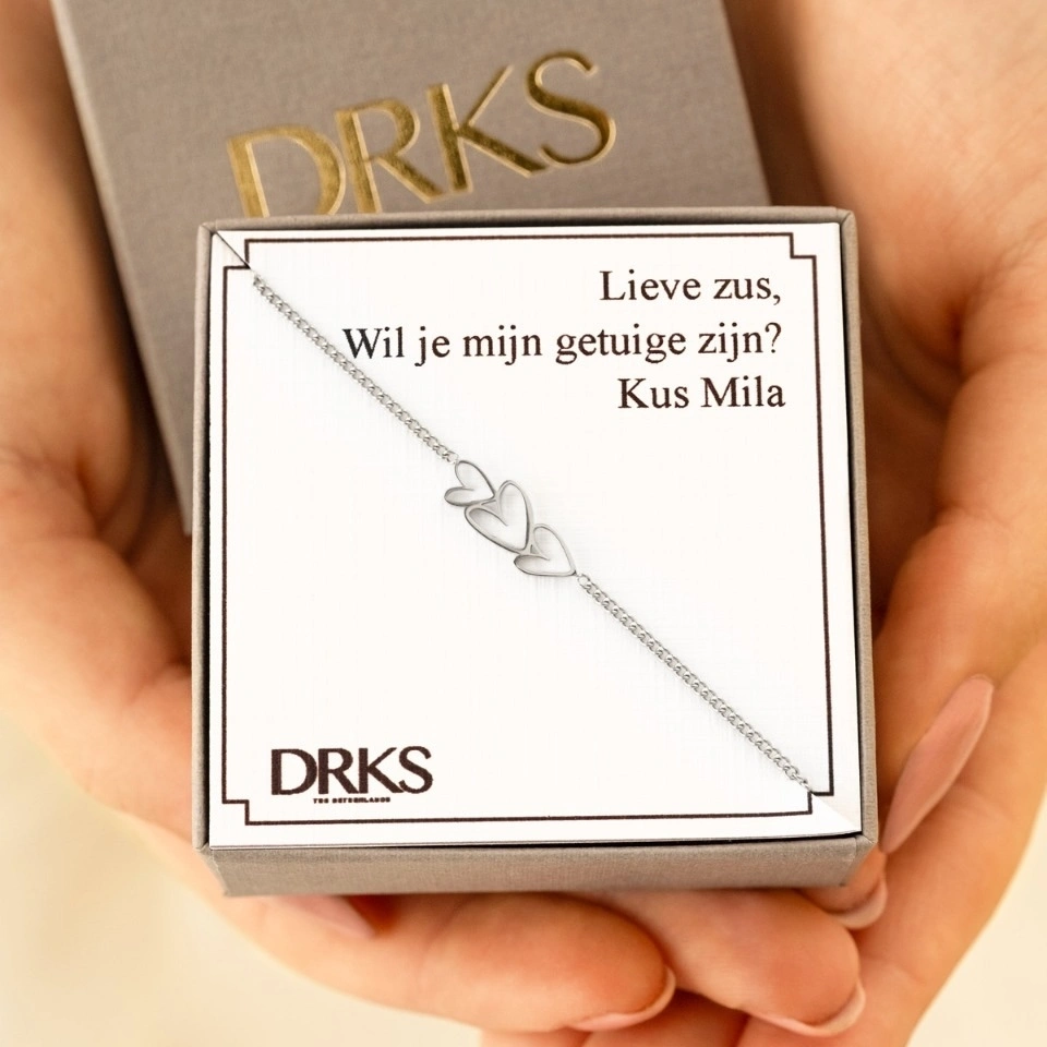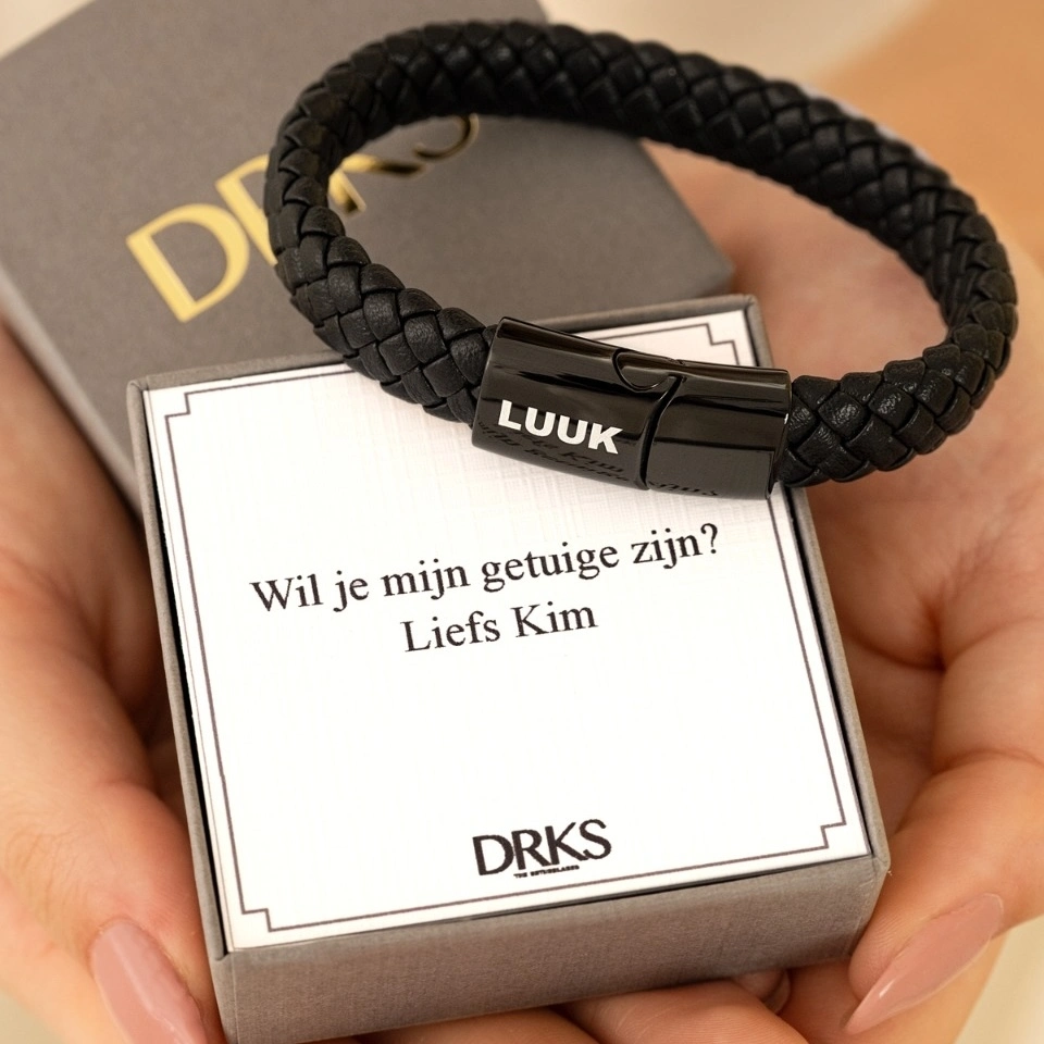 Geef jouw belangrijke vraag een bijzondere lading door een getuige vragen cadeau van DRKS te geven! Een cadeau voor jouw getuige kiezen is natuurlijk super persoonlijk, maar we helpen je er graag mee. Bijna al onze sieraden, accessoires en cadeautjes worden verpakt in een luxe doosje waarin je een persoonlijke tekst kan laten printen. Zo kun je jouw getuige vragen met een mooie en persoonlijke boodschap. Hoe bijzonder is dat?