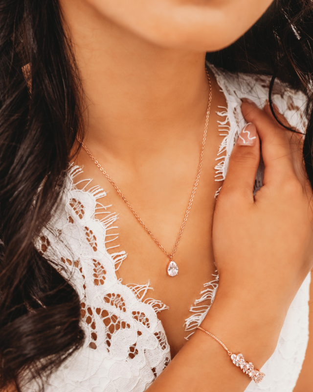 Op zoek naar een rosé goudkleurige ketting om te dragen op jouw bruiloft? Wij hebben de juiste ketting voor jou! Deze rosé goudkleurige ketting met druppel is subtiel en fijntjes en is dus het perfecte sieraad om te dragen bij jouw schitterende trouwjurk. Het subtiele druppelvormige hangertje glinstert zo mooi dankzij de hoogwaardige zirkonia. Na de bruiloft kun je de ketting nog super goed dragen bij jouw dagelijkse outfit, naar een feestje of andere speciale gelegenheid. Helemaal fan van deze ketting? Shop dan ook een bijpassende bruids armband om jouw bridal look helemaal compleet te maken! Je ontvangt jouw ketting in een luxe sieradendoosje waarin je eventueel gratis een persoonlijke tekst kan laten printen. Dit zijn alle details van de rosé goudkleurige ketting met druppel: