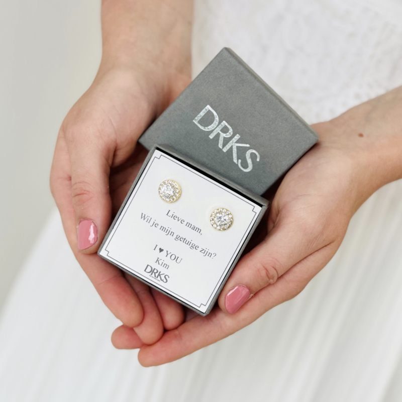 Deze ronde oorbellen met zirkonia’s zijn klassiek en vrouwelijk tegelijk! Deze oorbellen zijn de juiste keuze voor iedereen die op zoek is naar elegante oorbellen in de kleur goud. De ronde oorbellen met zirkonia’s zijn tijdloos en hebben een mooie, luxe uitstraling. De oorbellen kun je super goed matchen met de goudkleurige Daily Luxury armbanden en kettingen wanneer je voor de complete look wilt gaan. Je ontvangt jouw DRKS oorbellen altijd in een luxe sieradendoosje. Geef je de ronde oorbellen cadeau? Vergeet dan niet om een gratis persoonlijke tekst in het doosje te laten printen om het cadeautje extra speciaal te maken. Elke vrouw wordt blij van zo’n prachtig en uniek cadeau! Dit moet je weten over de ronde oorbellen met zirkonia’s: