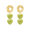 Dubbele hartjes oorbellen groen goudkleurig