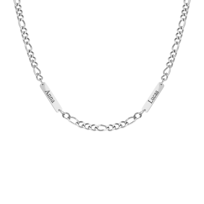 Een persoonlijk cadeau voor hem. Met deze zilverkleurige graveerbare herenketting met namen maak je gegarandeerd indruk. De ketting is stijlvol, persoonlijk en extra bijzonder doordat je de vier plaatjes kunt laten graveren. Kies bijvoorbeeld voor de namen van zijn kinderen of andere dierbaren, zodat hij deze speciale namen altijd dichtbij zich draagt. Is de man voor wie jij deze ketting uitzoekt gek op sieraden. Neem dan ook zeker een kijkje bij onze heren armbanden voor nog meer stijlvolle sieraden voor hem. Alles wat je verder nog moet weten over deze zilverkleurige graveerbare herenketting: