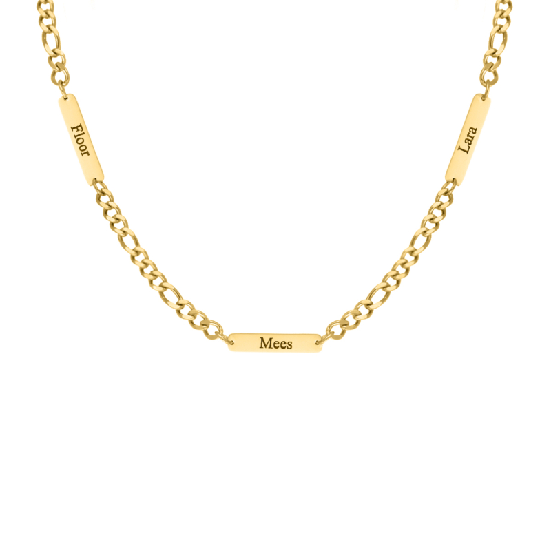 Graveerbare herenketting met namen goudkleurig