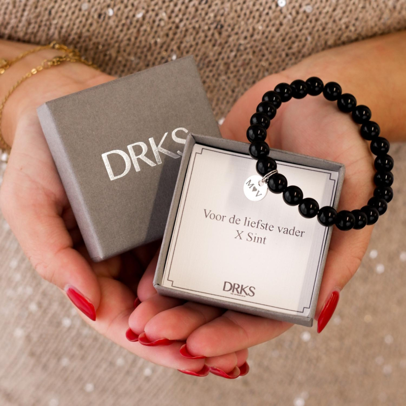 Welke bijzondere man ga jij blij maken met deze heren armband met naam? De armband is gemaakt van zwarte glaskralen en bevat een zilver kleurige muntje. Dit muntje kun je gratis door ons laten graveren! Ga voor een naam, letter of speciale datum en geef deze heren armband een personal touch! Draagt de man die jij gaat verrassen graag sieraden? Neem dan zeker een kijkje tussen onze heren ringen en heren kettingen! Het meest stijlvolle en gepersonaliseerde cadeau voor hem shop je bij DRKS! Alles wat je verder wilt weten over deze heren armband met naam in de kleur zwart vind je hieronder: