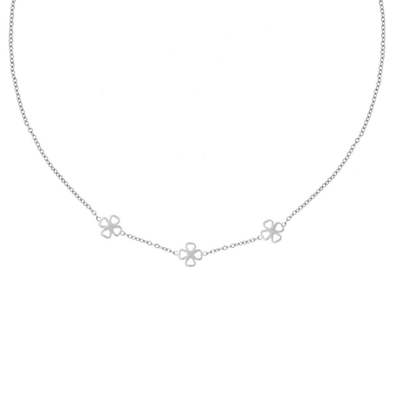 Neem je contact met ons op wanneer je nog vragen hebt over deze zilverkleurige ketting met klavertjes?