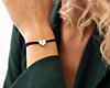 Onze klantenservice helpt graag verder bij eventuele vragen over deze satin heart initial armband in de kleur zwart!