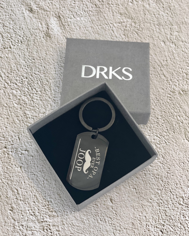 Deze sleutelhanger met naam is het perfecte cadeau voor jouw opa! In deze sleutelhanger staat de quote ‘Best opa ever’ standaard gegraveerd. Eronder komt de naam van jouw opa te staan, die hoef jij alleen in te vullen. Wij graveren dit leuke cadeau dan speciaal voor jou in ons eigen atelier in Nederland! Met deze sleutelhanger geef jij aan jouw opa een herinnering aan hoe veel zijn kleinkinderen van hem houden, die hij altijd bij zich kan dragen! Je ontvangt deze sleutelhanger in een luxe DRKS doosje en je kan er daarnaast ook nog eens voor kiezen om het doosje met de sleutelhanger in te laten pakken in een cadeauverpakking. Alle details van deze zwarte sleutelhanger vind je hier: