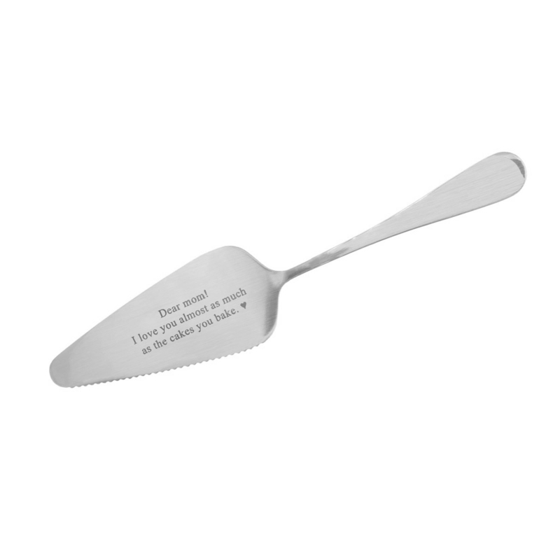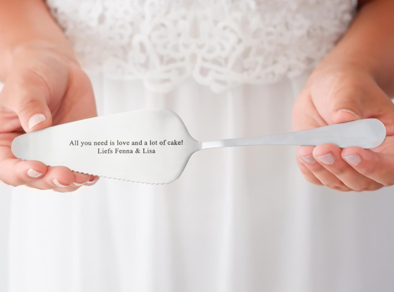 Ben jij op zoek naar een uniek en persoonlijk cadeautje dan is deze taartschep precies waar jij naar op zoek bent! Het is niet zomaar een taartschep, je kunt deze taartschep namelijk personaliseren met de tekst van jouw keuze. Hoe bijzonder is dat? Je kunt hem bijvoorbeeld laten graveren met een (trouw)datum, maar ook met namen, initialen of een leuke korte tekst. Het aansnijden van de taart wordt zo nog leuker met een gepersonaliseerde taartschep! Een persoonlijk cadeautje valt altijd in de smaak! Alles wat je verder nog moet weten over deze zilver kleurige taartschep die je kunt personaliseren: