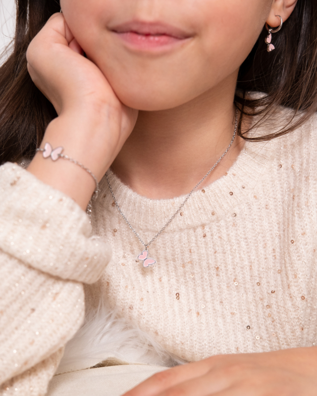 Deze kids vlinder ketting is echt te schattig! Deze staat super leuk bij elk meisje! Dit mooie kettinkje heeft een hangertje met een vlindertje dat roze is. Wie houdt er nou niet van een beetje roze? Dit kettinkje is super leuk om cadeau te geven, samen met een leuk bijpassend kinder armbandje. Je ontvangt dit kettinkje daarnaast in een sieradendoosje van DRKS, wat super handig is om in te bewaren! Hier vind je alle details over de kids vlinder: